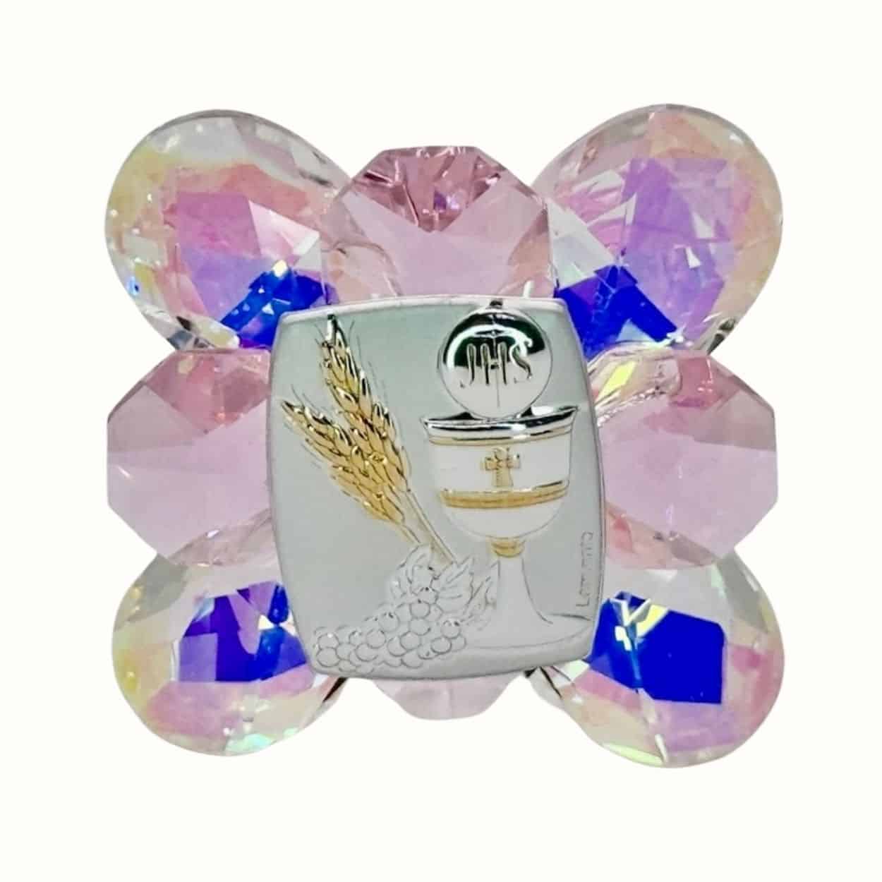 Rosafarbener Kristallaufsteller zur Kommunion – Bomboniere Gastgeschenk